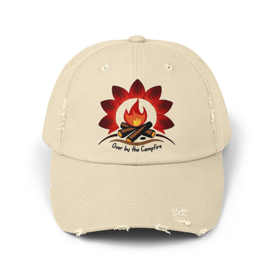 Over by the Campfire -Distressed Unisex Cap with Fire and Floral Design, Vintage Style Hat for Casual Wear, Great for Festivals, Daily Outings, Birthdays, [...]