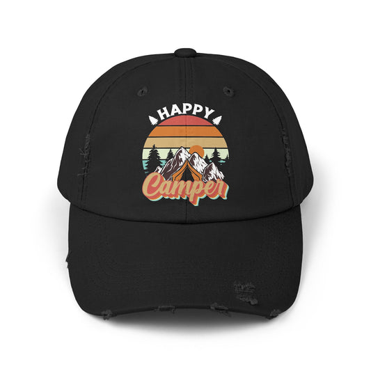 Happy Camper Distressed Cap – Perfect for Outdoor Enthusiasts