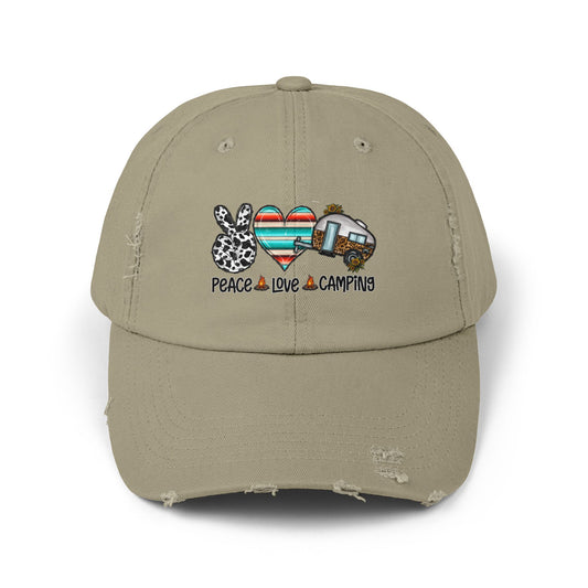 Unisex Distressed Cap - Peace Love Camping Graphic Hat