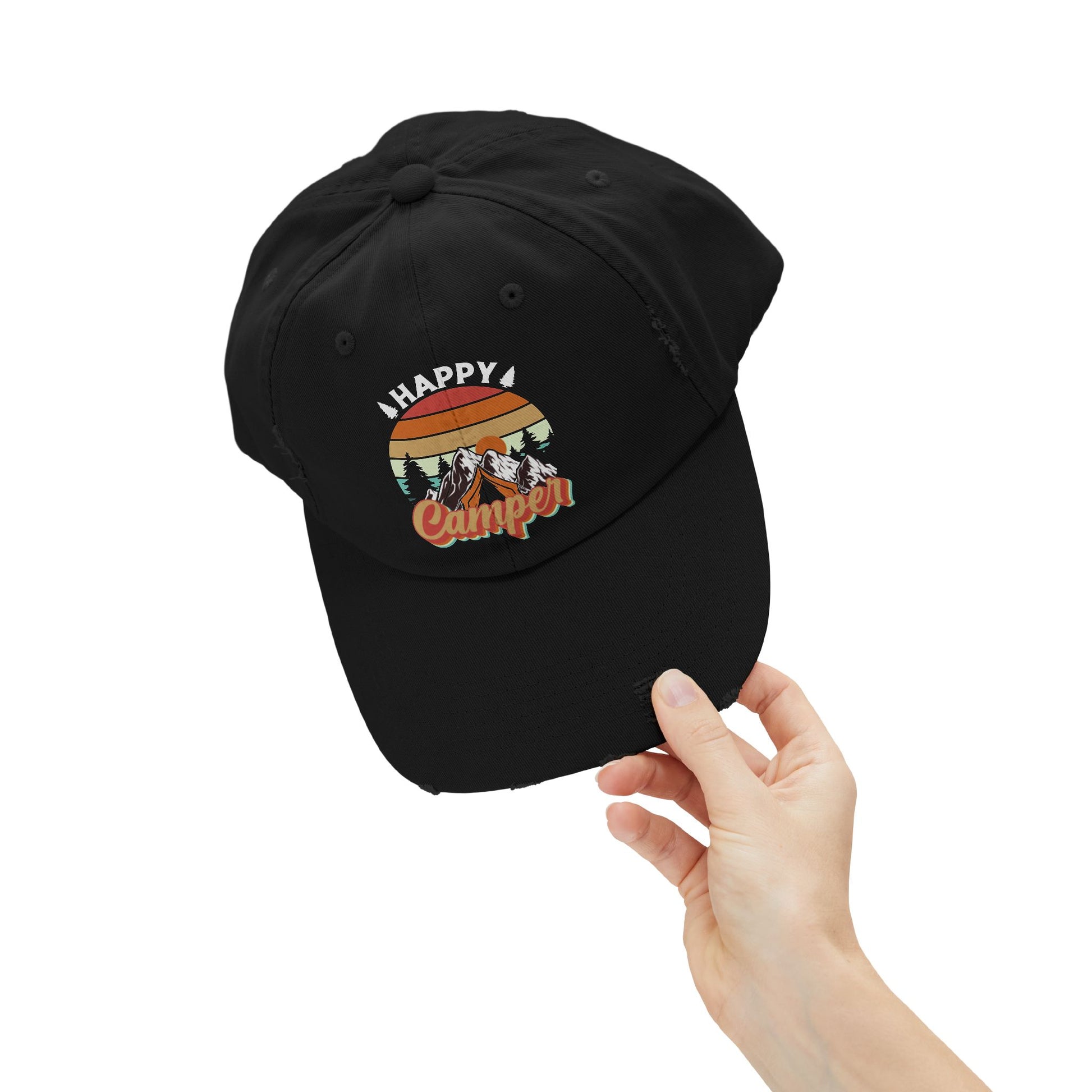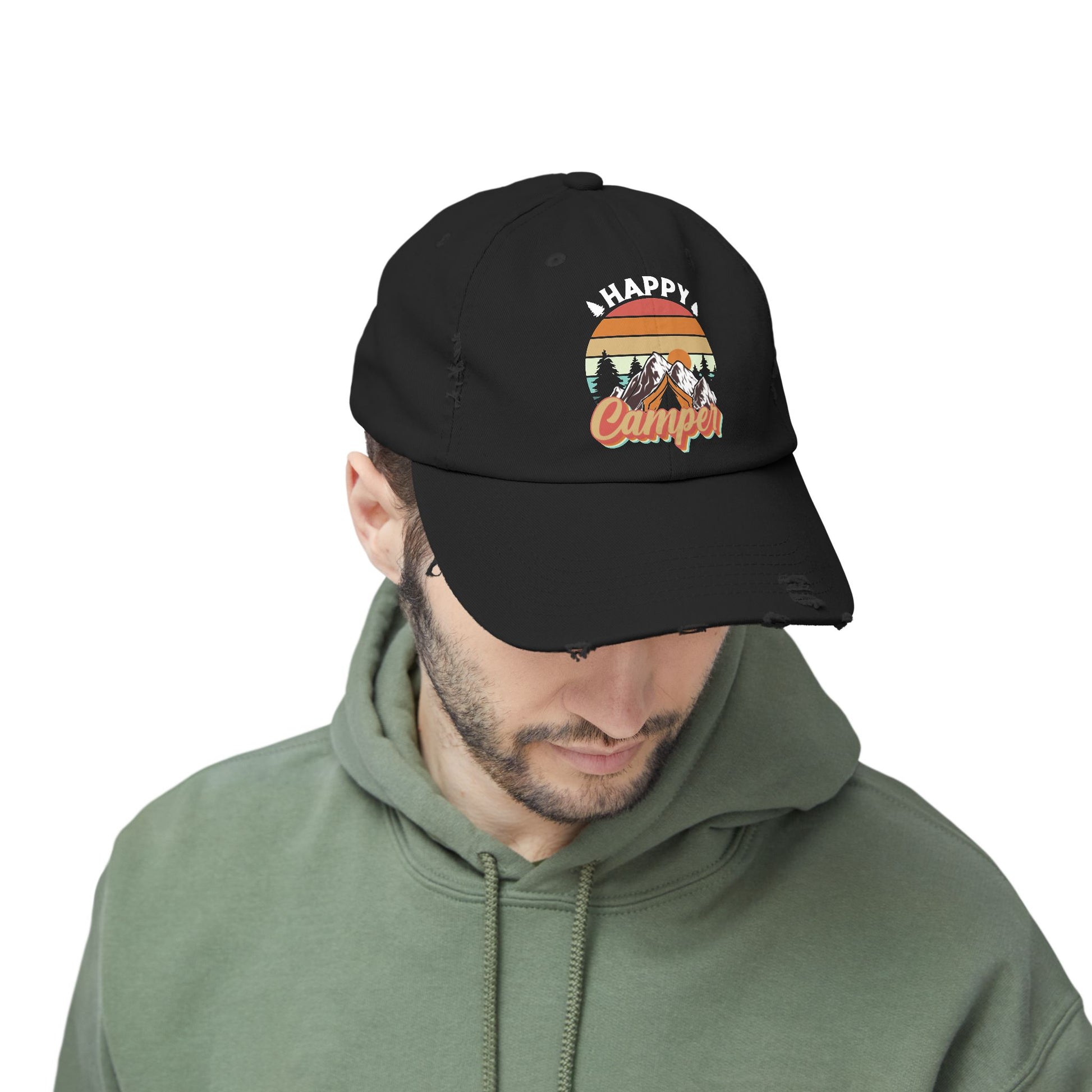Happy Camper Distressed Cap – Perfect for Outdoor Enthusiasts