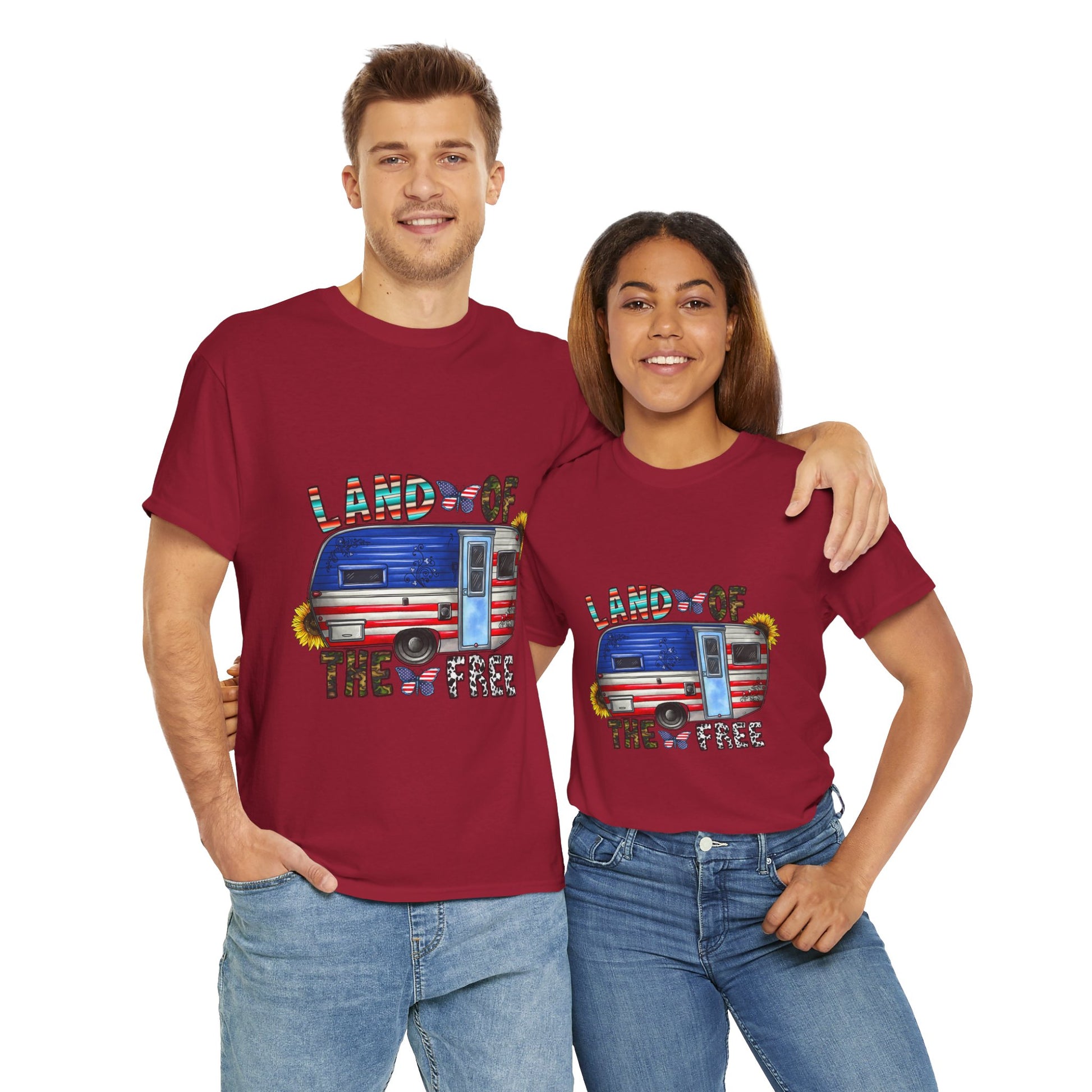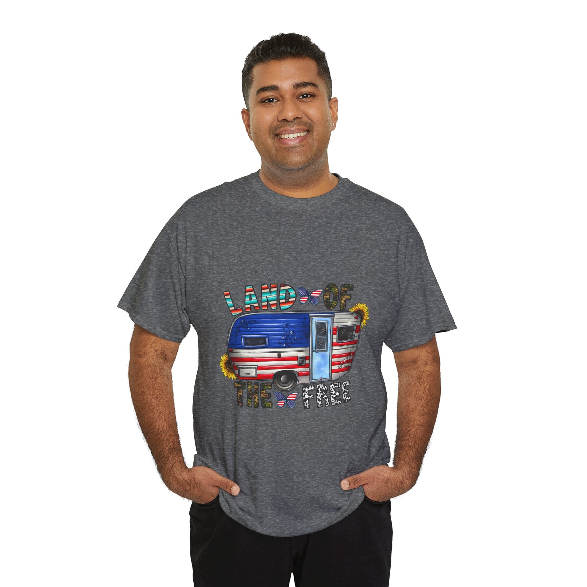 Land of the Free - The unisex heavy cotton tee is the basic staple of any wardrobe. It is the foundation upon which casual fashion grows. All it needs is a personalized design to elevate things to profitability. The specially spun fibers provide a smooth surface for premium printing vividity and sharpness. No side seams mean there are no itchy interruptions under the arms. The shoulders have tape for improved durability.