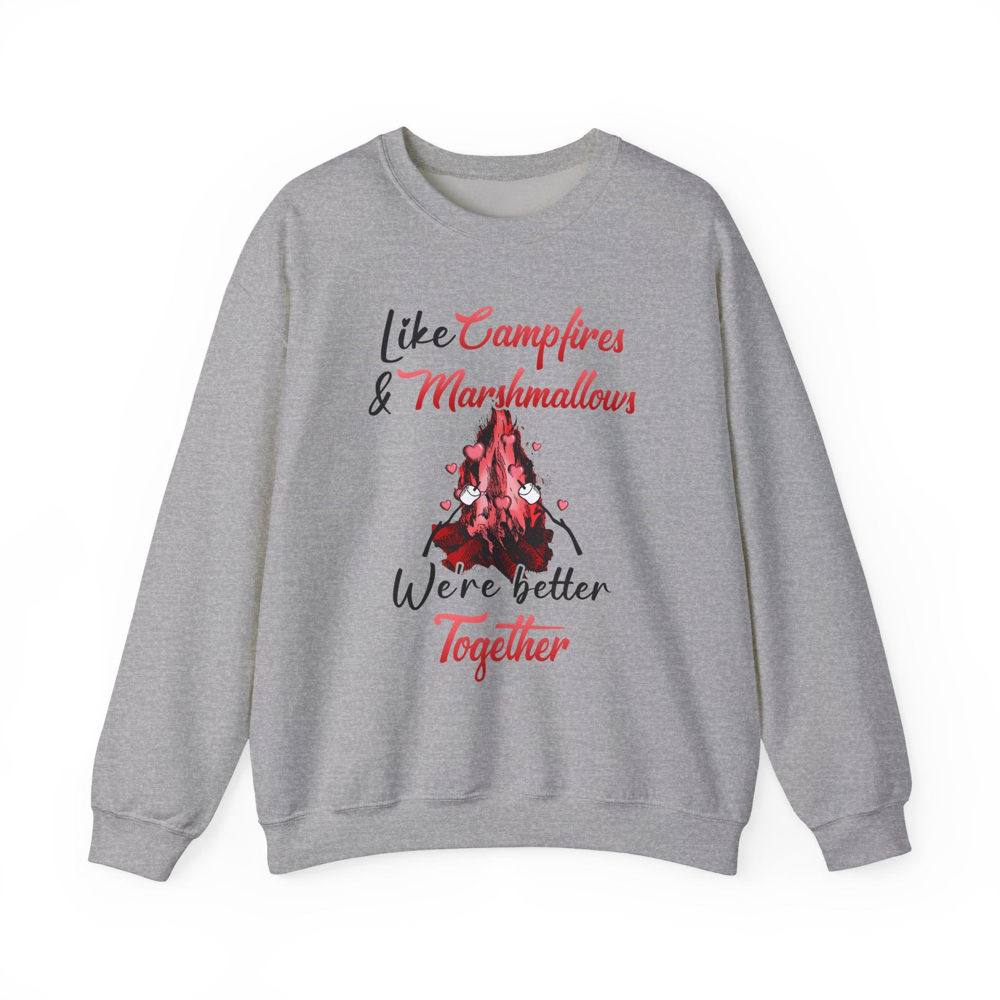 Like Campfires and & Marshmallows, We're Better Together - Ideal for any situation, a unisex heavy blend crewneck sweatshirt is pure comfort. These garments are made from polyester and cotton. This combination helps designs come out looking fresh and beautiful. The collar is ribbed knit, so it retains its shape even after washing. There are no itchy side seams on these sweaters.